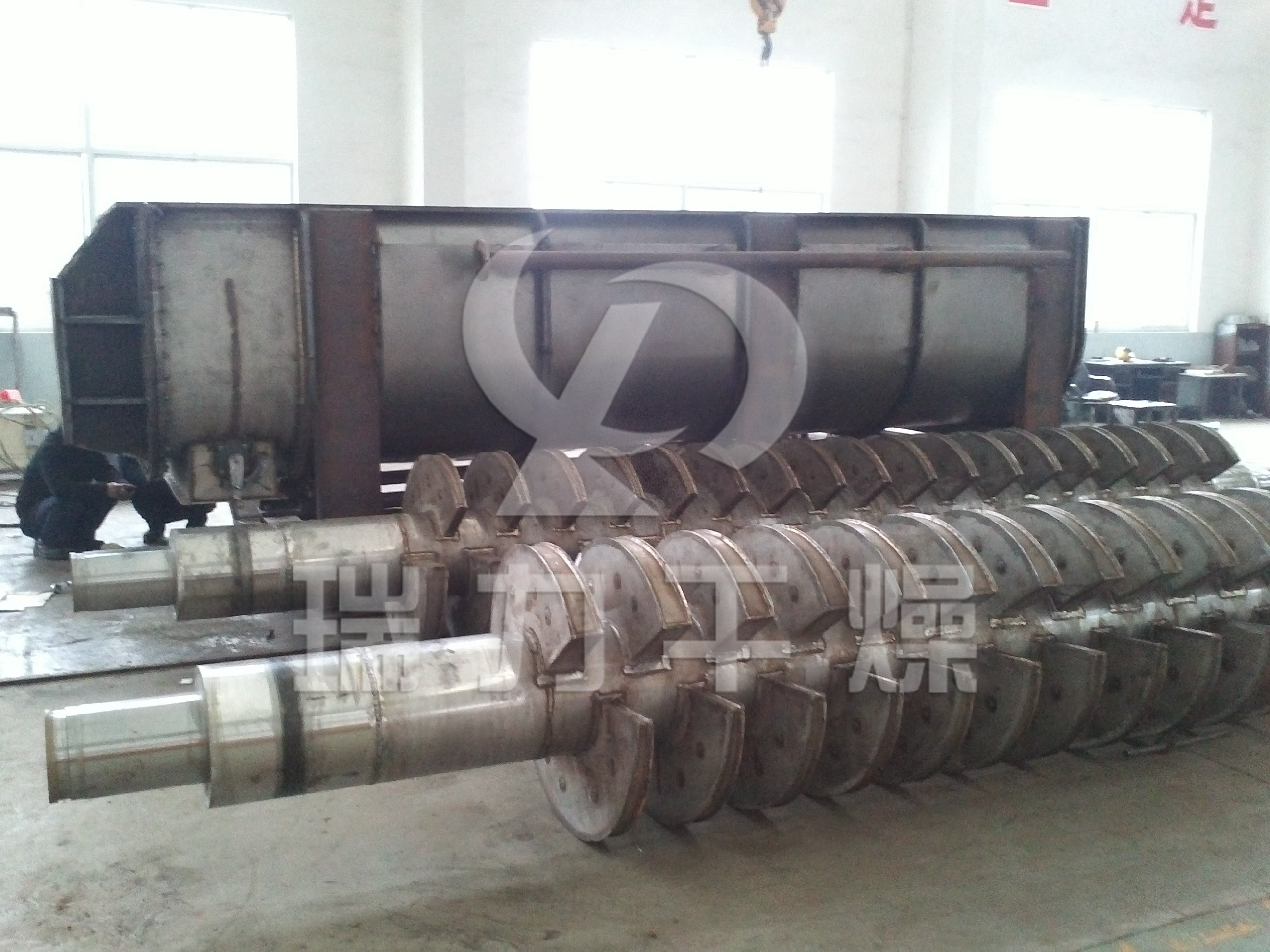 二、 膨潤土專用空心槳葉干燥機概述:膨潤土專用空心槳葉干燥機可對膏狀、顆粒狀、粉狀、漿狀物料間接加熱或冷卻,可完成干燥、冷卻、加熱、滅菌、反應、低溫燃燒等單元操作。設備中特殊的楔型攪拌傳熱漿葉具有較高的傳熱效率和傳熱面自清潔功能。