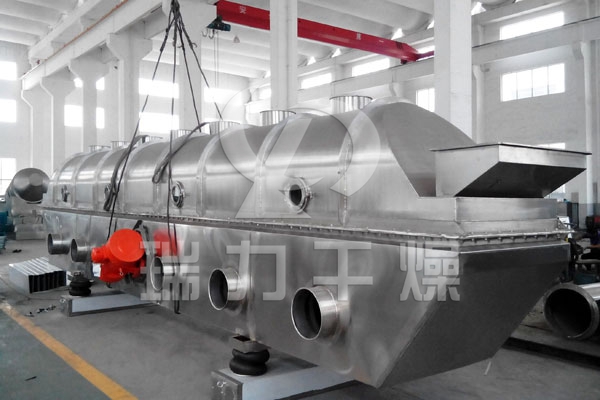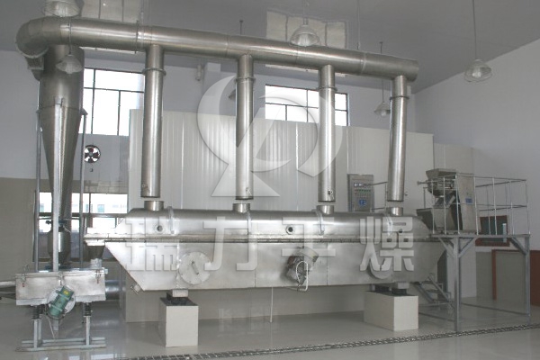 案例描述:磷酸二氫鉀專用流化床干燥機(jī)的物料自進(jìn)料進(jìn)口進(jìn)入機(jī)內(nèi),在振動力作用下,物料沿水平面流化床拋擲,向前連續(xù)運(yùn)動,熱風(fēng)向上穿過流化床同濕物料換熱后,濕空氣經(jīng)旋風(fēng)分離器除塵后由排風(fēng)1:3排出.干燥物料由排料進(jìn)口排出。