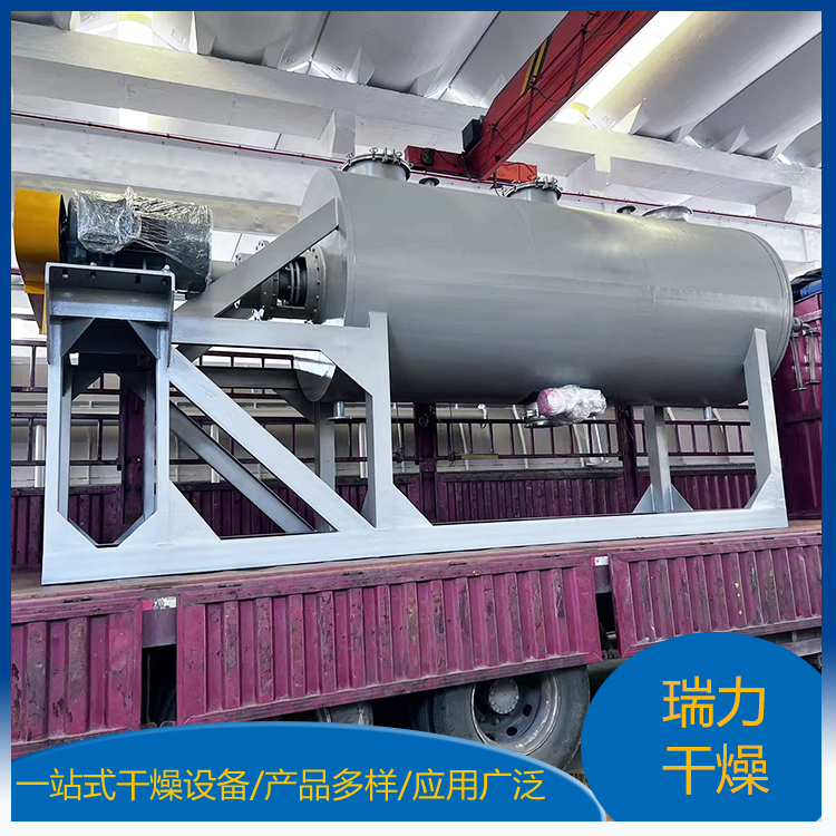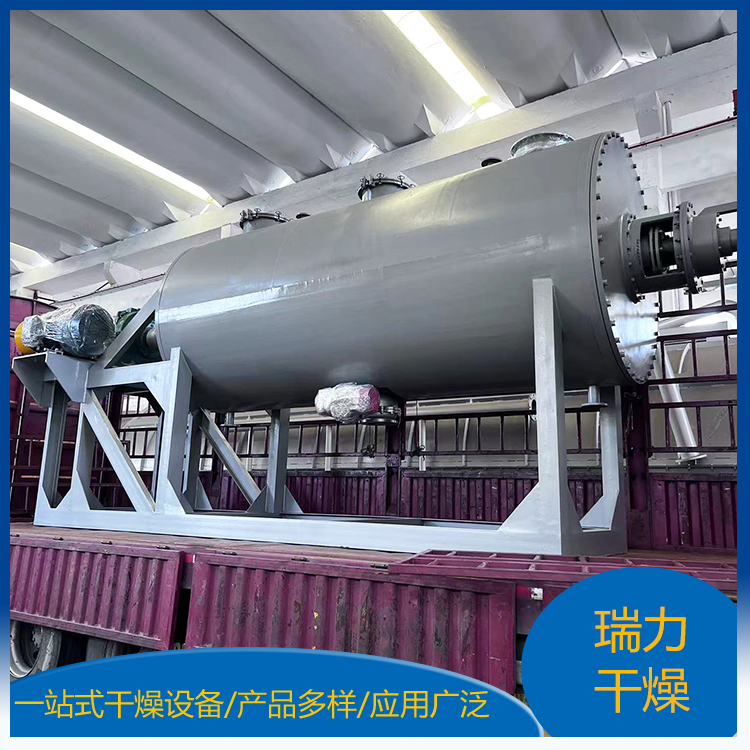 干燥設(shè)備在干燥機(jī)臥式筒體內(nèi),裝有攪拌軸及攪拌葉。筒體夾套、攪拌軸及攪拌葉均可通入加熱介質(zhì),在攪拌作用下,物料在筒體內(nèi)充分混合與換熱,溶劑蒸汽通過殼體上抽真空口排出,經(jīng)過袋式過濾器過濾夾帶粉塵,進(jìn)入冷凝器冷凝回收。達(dá)到干燥要求后停機(jī), 將物料從筒體下部卸料口排出,再進(jìn)行下一批料的操作。間歇操作、圓形筒體及動(dòng)、靜密封點(diǎn)的精密加工,使該設(shè)備能達(dá)到*的真空度。視物料性質(zhì),筒體內(nèi)壁、攪拌軸等可進(jìn)行鏡面拋光處理。